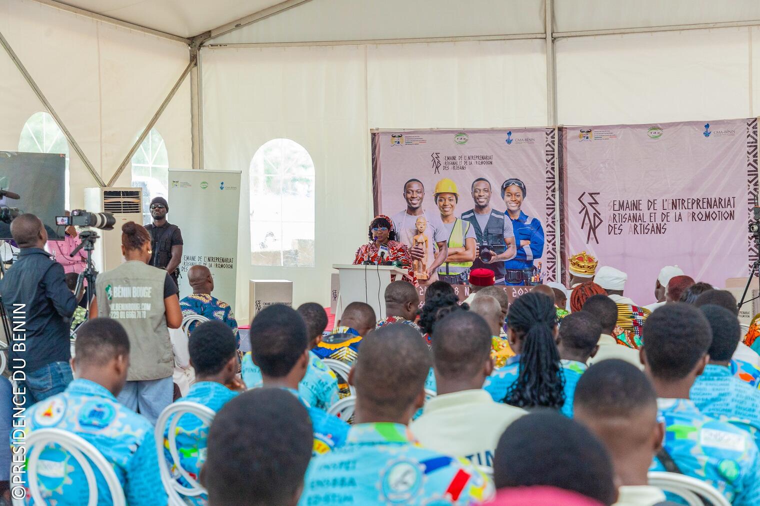 Le Ministre des Petites et Moyennes Entreprises et de la Promotion de l’Emploi, Monsieur Modeste Tihounté KEREKOU, empêché, a été représenté par la Secrétaire Générale Adjointe du Ministère, Madame Opportune NATABOU. Dans son adresse, elle a réaffirmé l’engagement du gouvernement du Président Patrice TALON en faveur de la modernisation du secteur artisanal, insistant sur la nécessité de professionnaliser les acteurs et de créer un environnement propice à l’entrepreneuriat artisanal.