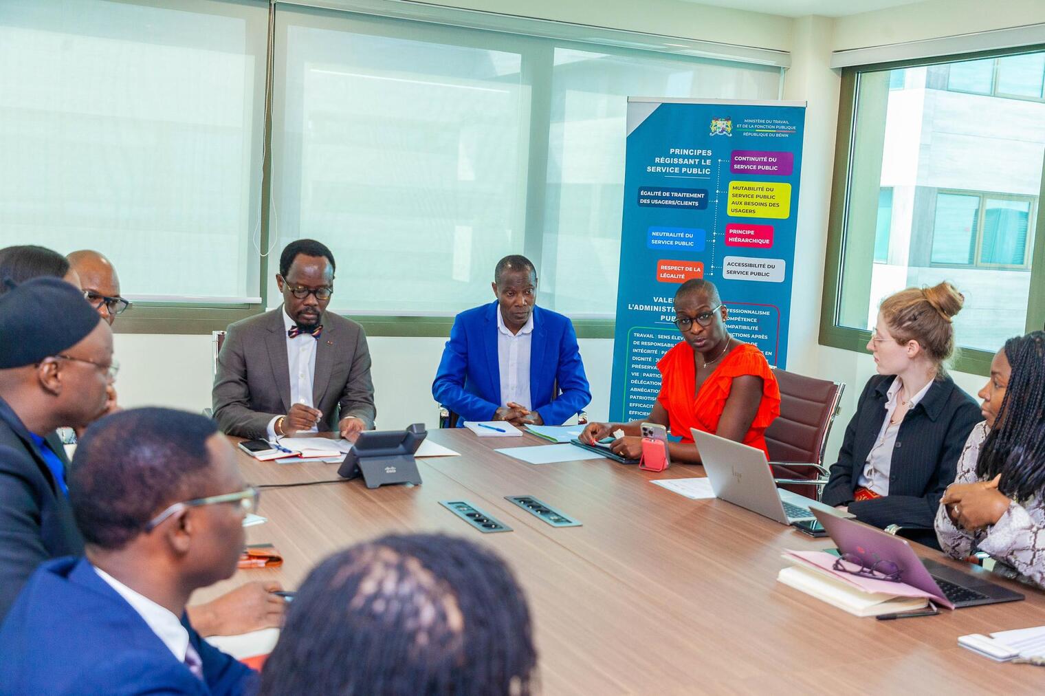 La réunion a été marquée par une allocution du Ministre, la présentation des points d’attention découlant de la mise en œuvre du Projet faite par la Directrice Générale de la Caisse des Dépôts et Consignations du Bénin Mme. Maryse LOKOSSOU et enfin les échanges et discussions.